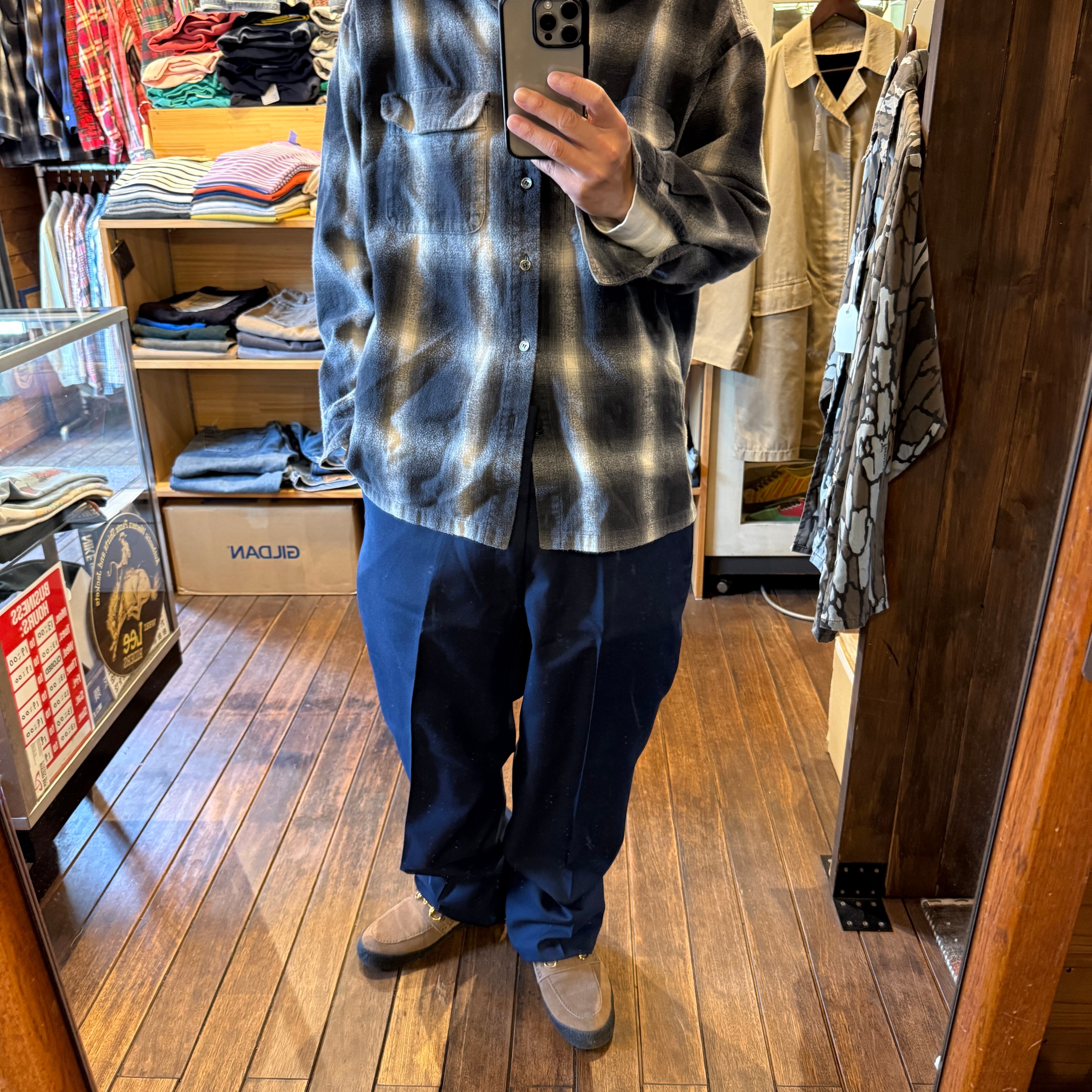 ポリ×ウール 厚み無くサラサラしてるので時期としては今が適正です◎ シワで細く見えますが 太めなスラックススタイルです 着画参照